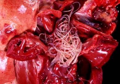 Os ascarídeos (Toxocara canis) são comuns em cães, especialmente em filhotes. Os ovos de ascarídeos são encontrados no solo, onde podem sobreviver por anos. O cão aspira os ovos ao farejar os arredores no solo ou pegando algo com a boca. Os ovos são chocados como larvas, penetram na corrente sanguínea até os pulmões e daí até a traquéia, de onde são aspirados novamente, voltando para o intestino e se transformando em vermes adultos. As larvas de ascarídeos também podem ser transmitidas da mãe para os filhotes pela placenta (na realidade, os filhotes já nascem com ascarídeos) ou através do leite da mãe.